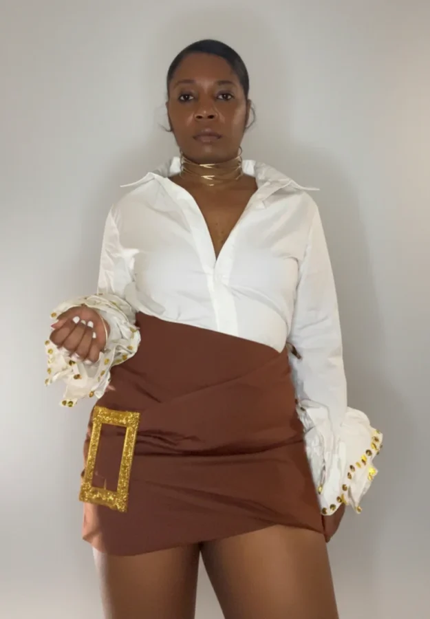 Buckle up mini skirt.