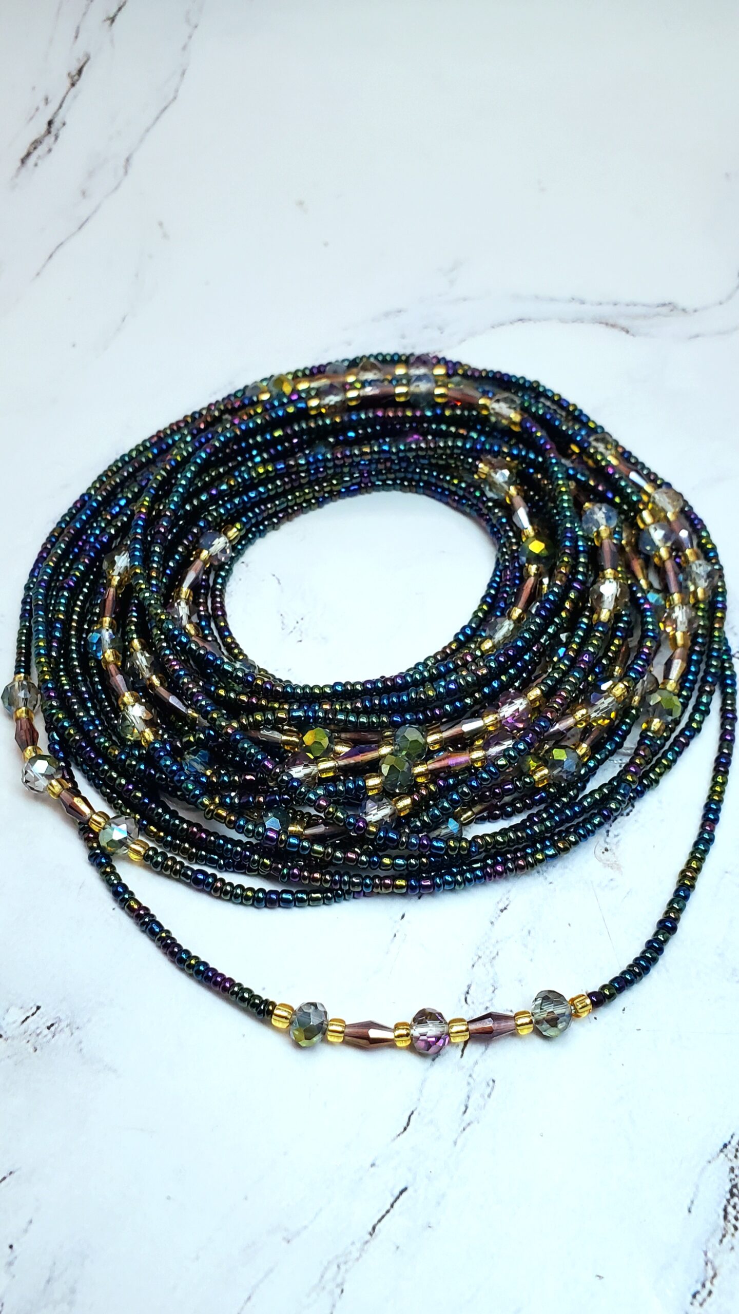 I started my spiritual journey over 10 years ago, diving into tarot and learning how crystals can support everyday life… From calming the mind to boosting confidence. What began as curiosity quickly turned into creativity. I started making waist beads, soothing bath soaks for different ailments, crystal jewelry, and art infused with intention and energy.